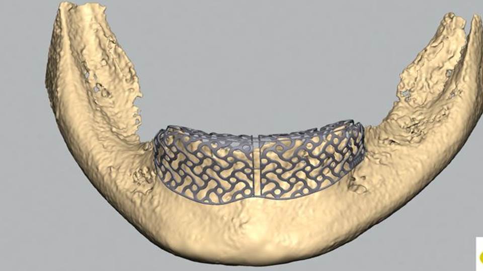 Ein weiteres sehr innovatives Verfahren, das wir bei extrem großen Defekten einsetzen, ist das Reoss-System. Dabei wird basierend auf einem 3D-Röntgendatensatz die natürliche Form des Kiefers rekonstruiert und ein individuelles Gerüst für den Kieferaufbau modelliert. Wir setzen diese Verfahren nur mit Eigenknochen ein, den wir je nach Situation im günstigsten Fall gleich bei der Implantatbohrung gewinnen.