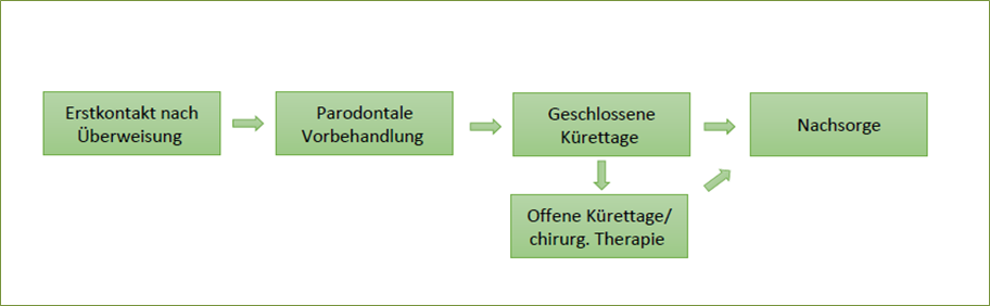 Der Ablauf einer Parodontitistherapie lässt sich wie folgt zusammenfassen: